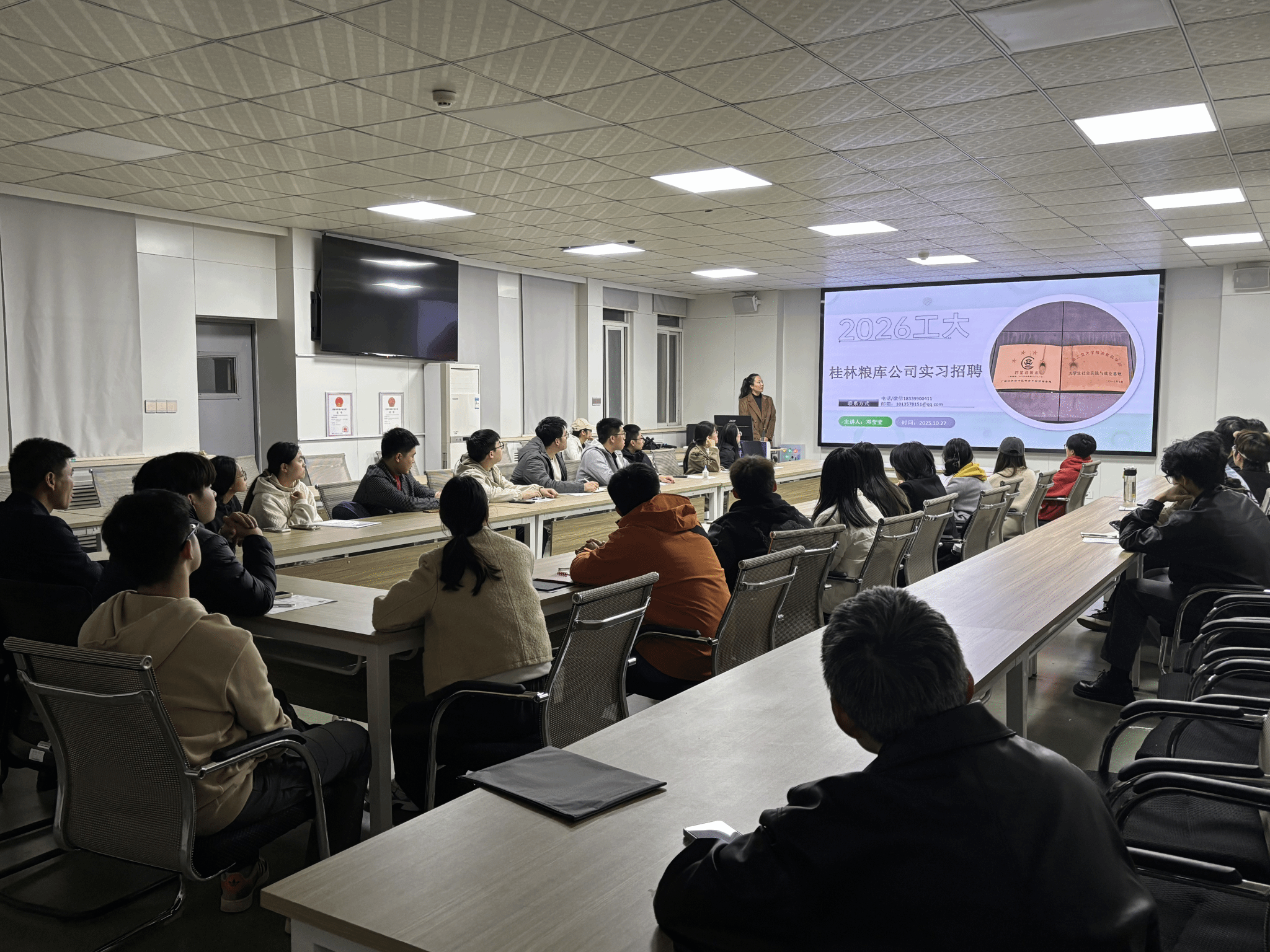 毕业生就业渠道,2025年10月27日,桂林粮食储备库有限公司专场招聘会在成人影视40202捷赛厅顺利举办。桂林粮库公司副总经理黄金宏、桂林粮库公司仓储部副经理邓莹莹和桂林粮库公司办公室副主任李杏参加本次活动,招聘会前与成人影视