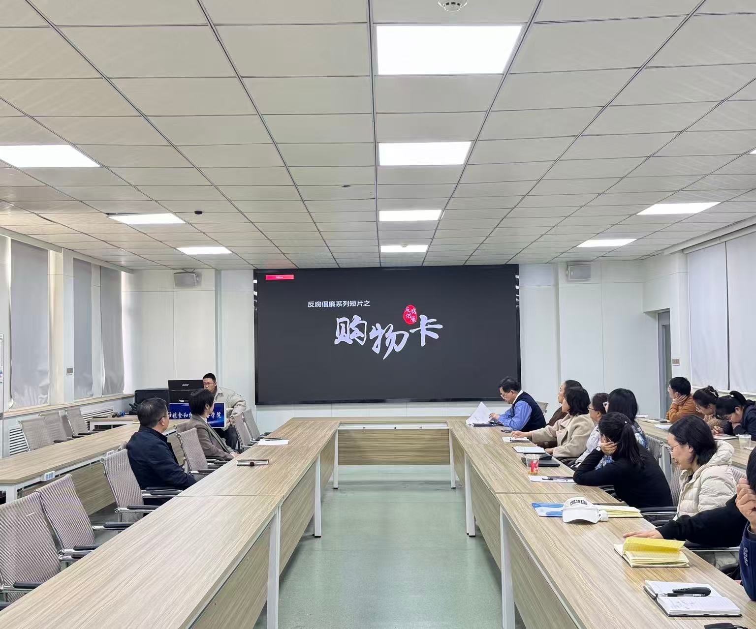 活动以案例警示教育为切入点,组织全体教师集中观看反腐倡廉系列警示教育短片。短片聚焦"购物卡"等隐形变异"四风"问题,通过剖析真实案例,全景展现了部分党员干部从"小节失守"到"底线松弛"、最终陷入腐败泥潭的蜕变过程,深刻揭示了"微腐败"的严重危害和"破窗效应"的惨痛教训,为在场教职工上了一堂直击心灵的廉洁警示教育课,敲响了廉洁自律的警钟。
